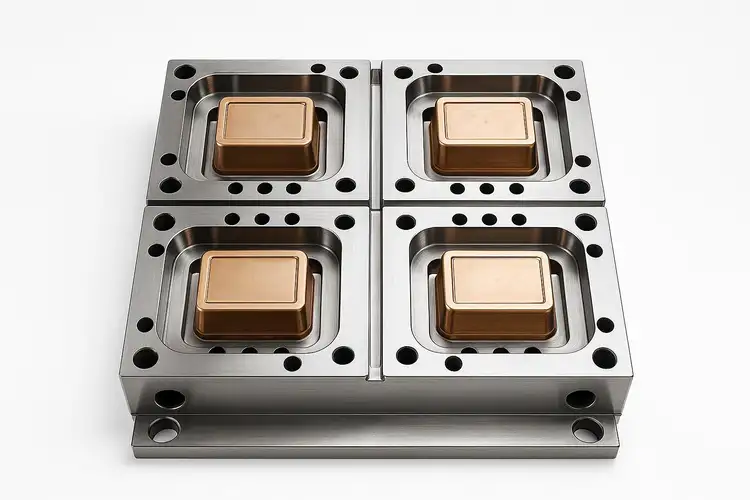 Polypropylene thin wall food container mould. Rectangular shape, available in large and small sizes, 500ml capacity. Microwave safe, suitable for disposable use. Solid pattern, item code SS 305.