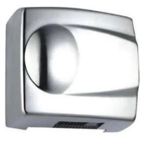 Stainless steel hand dryer for hotel use. Operates at 220-250V/50Hz with 1900W power, 8 m/s air speed, and 15-20 sec drying time. Noise level 68 DB.