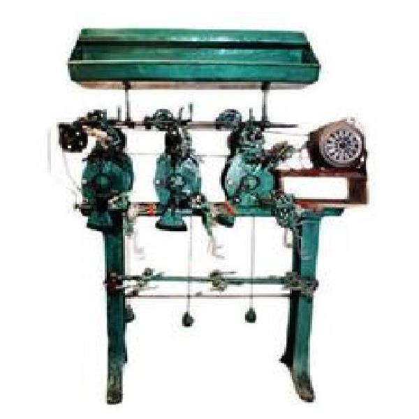 Iron construction thread winding equipment with three heads. Operates at 2200 RPM with a 1000 meter/minute capacity, ideal for textile industry applications.