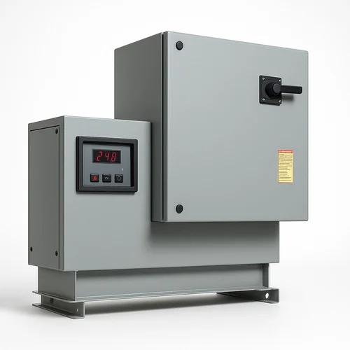 Micro controller-based, three-phase, air-cooled servo stabilizer. Ensures stable voltage output for industrial applications. Designed for reliable power conditioning.
