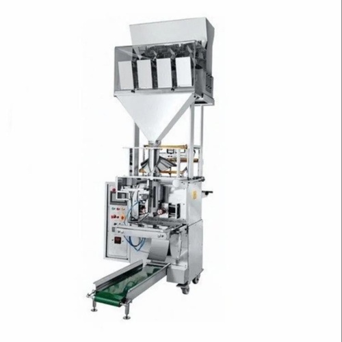 Automatic three-phase chips pouch packaging machine, 220-440 V. Stainless steel construction with 3 KW power and 50 Hz frequency, delivering 3000 pouches/hour.