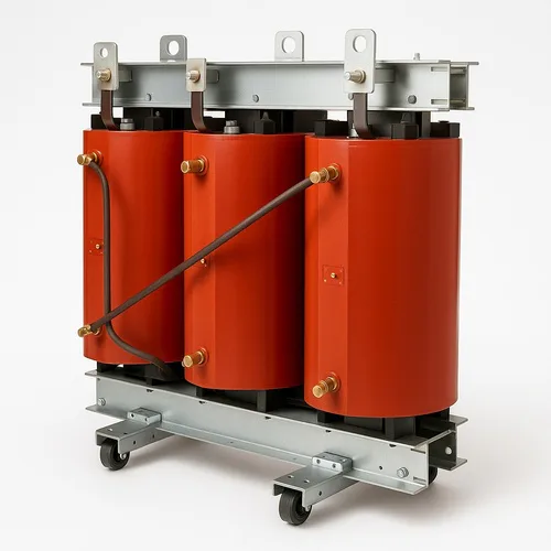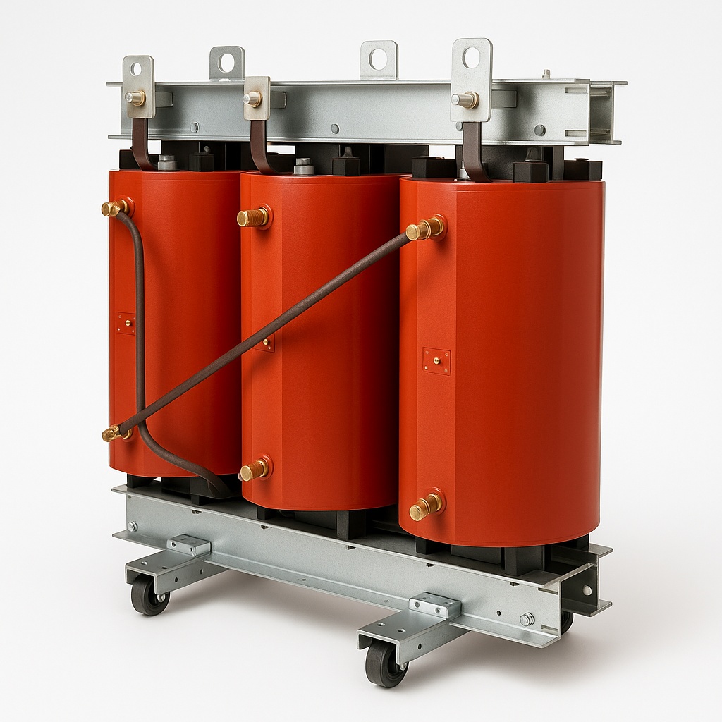 Three phase dry type transformer with 50/60 Hz frequency, primary voltage up to 33 KV, and secondary voltage 220/127, 480/277 V. Features AN, ANAF cooling and copper/aluminum winding.