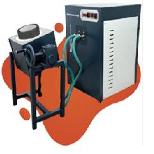 Electric, three-phase induction melting machine for commercial use. Operates at 440V and 50Hz. Melts 15 kg of copper in approximately 15 minutes.