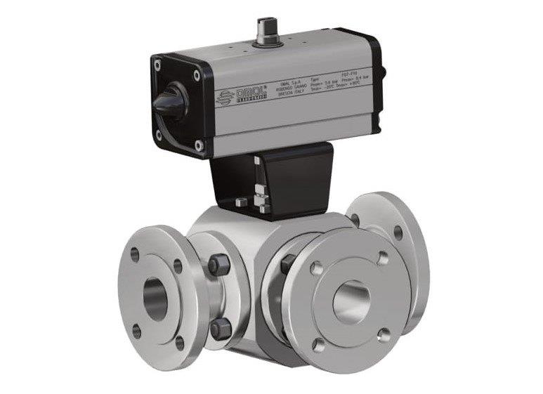 Three-piece design, L-port stainless steel ball valve with 4 seals. High-quality construction for industrial applications.