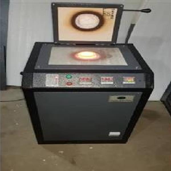 Tilt R copper induction melting machine, 440V electric power. 5 kW rated power, mild steel construction. Melts copper in 5-45 minutes.