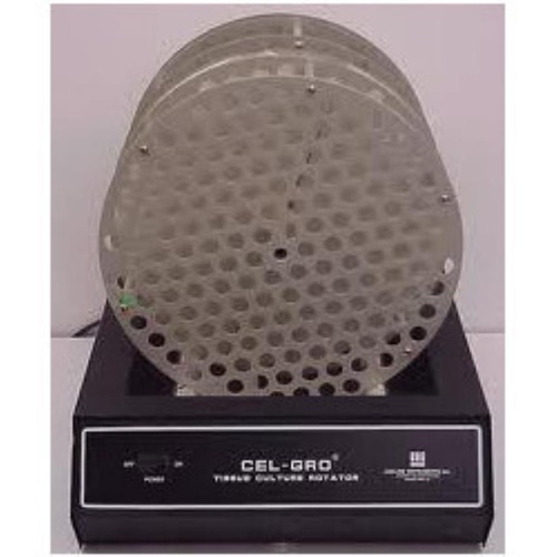 Device for rotating tissue cultures. Designed for laboratory environments to ensure uniform growth and nutrient distribution for cell cultures.