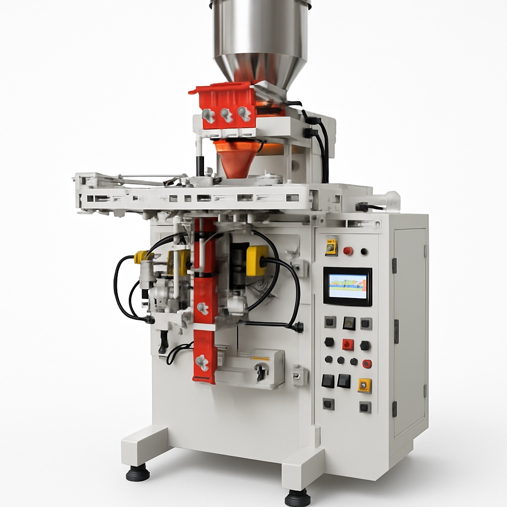 Pouch packing machine for tomato ketchup. Designed for efficient and reliable packaging of ketchup pouches for the food industry.