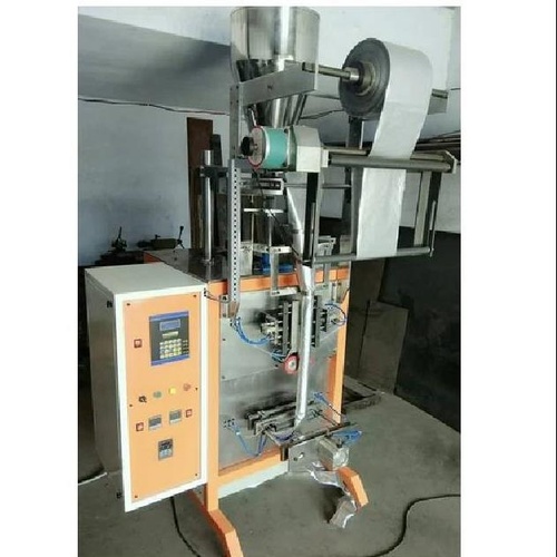 Semi-Automatic Tomato Ketchup Pouch Packaging Machine. Electric driven with 2 HP power, 240V, 50Hz. Processes up to 500 pouches per hour with a stainless steel body.