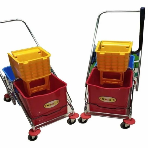 30 L floor mopping wringer bucket with plastic and stainless steel construction. Features 4 wheels for easy mobility, ideal for hotels and hospitals.