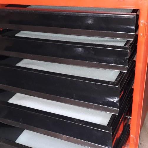 Five-door tool cart for organized storage. Durable construction to keep tools secure and accessible. Essential equipment for any workshop or garage.