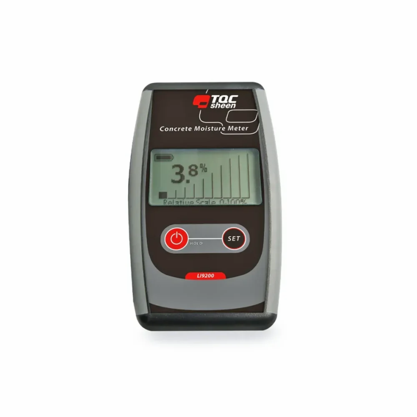 Black TQC industrial concrete moisture meter, model LI9200. Measures 0-50% moisture with a 2-year warranty. Operates at 0-40 degrees Celsius.