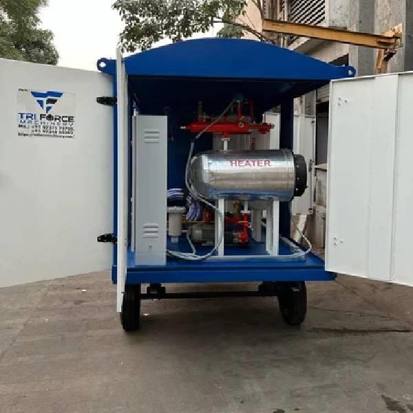 Transformer oil cleaning system for oil filtration, achieving < 1 micron rating. Removes moisture to < 10 PPM and dissolved gases to < 0.1%. Exceeds 65 KV BDV.