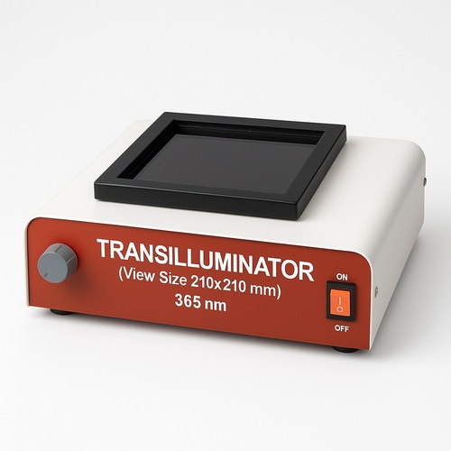 This transilluminator machine features a 210x210mm viewing area and a 365nm UV light source for efficient sample visualization. Ideal for laboratory applications requiring precise illumination.