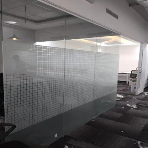 Standard glass partition available for commercial applications. Offers clear visibility and a minimalist aesthetic for various interior designs.