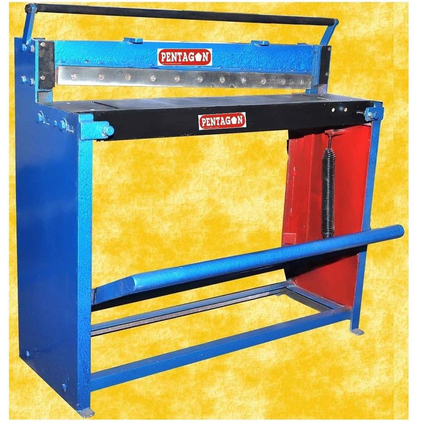 Steel treadle guillotine shearing machine, model PTSM 48. Capacity of 1220 mm x 22swg for sheet cutting. Maximum shear thickness 22swg, width 1220 mm. For steel cutting.