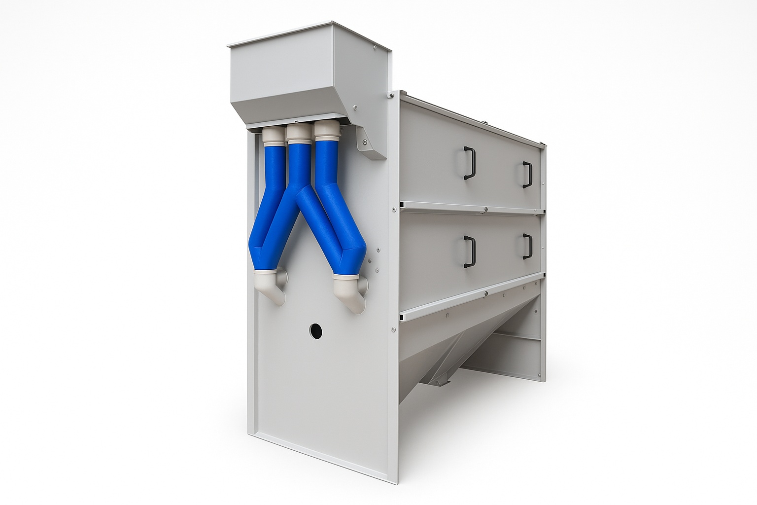 Semi-Automatic TTX Series Grader: Stainless steel construction, 20kg capacity, 5 HP motor, 4 blowers. Three-phase power, 50 Hz, 440 V. Ideal for industrial use.