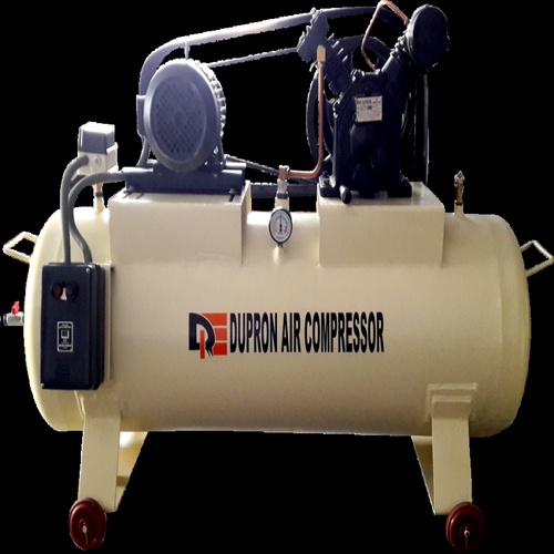 New, two-stage reciprocating air machine manufactured in India. Requires installation and after-sales service. Not available for rental.