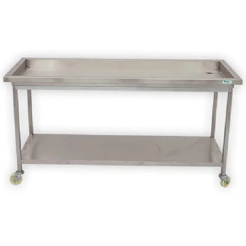 Two-layer stainless steel table for clean dish organization. SS304 material ensures durability for kitchen use. Size customizable to requirements.