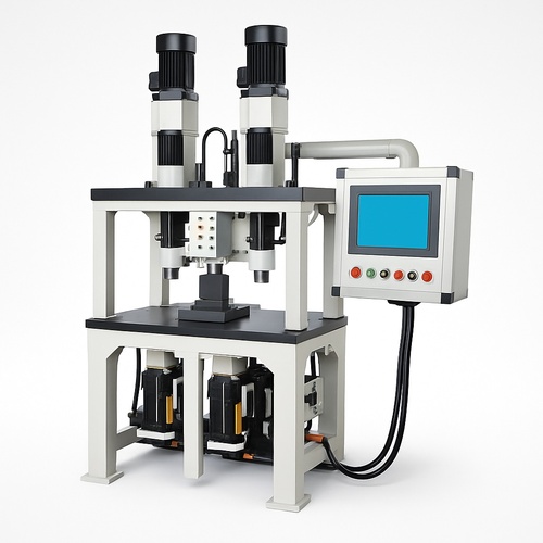 Automatic servo press machine for two-wheeler valve guides. Constructed from mild steel. Operates on 220-440V, 50 Hz. Designed for industrial applications.