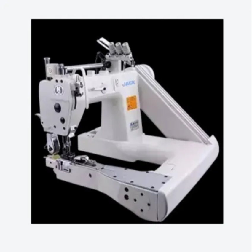 Jack chainstitch feed off arm sewing machine, available in two or three needle configurations. Max speed 4000-5000 stitches/min, 4mm max stitch length. 220V.