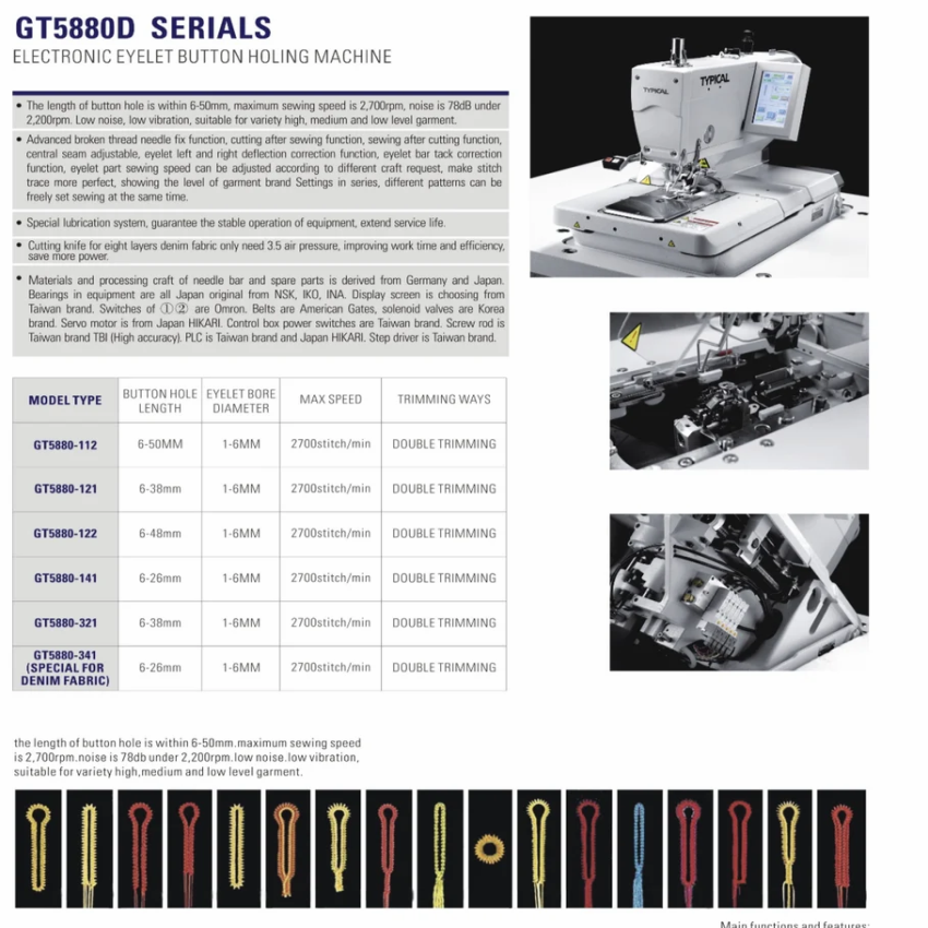 Typical GT5880D Electronic Eyelet Button Hole Sewing Machine