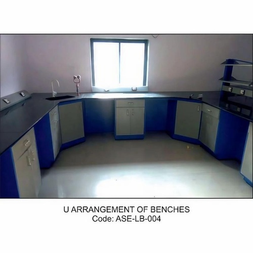 Indian-made MS U-arrangement lab benches. Dimensions: 4 Feet height. Model ASE-LB-004, specifically designed for laboratory use.