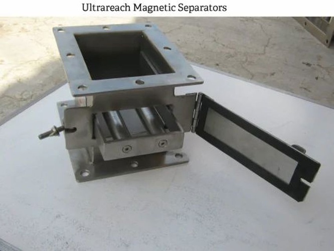 Stainless Steel Magnetic Separator with N35 magnet grade. Features Nickel coating on NdFeB magnet for efficient 1 Ton/Hr capacity.