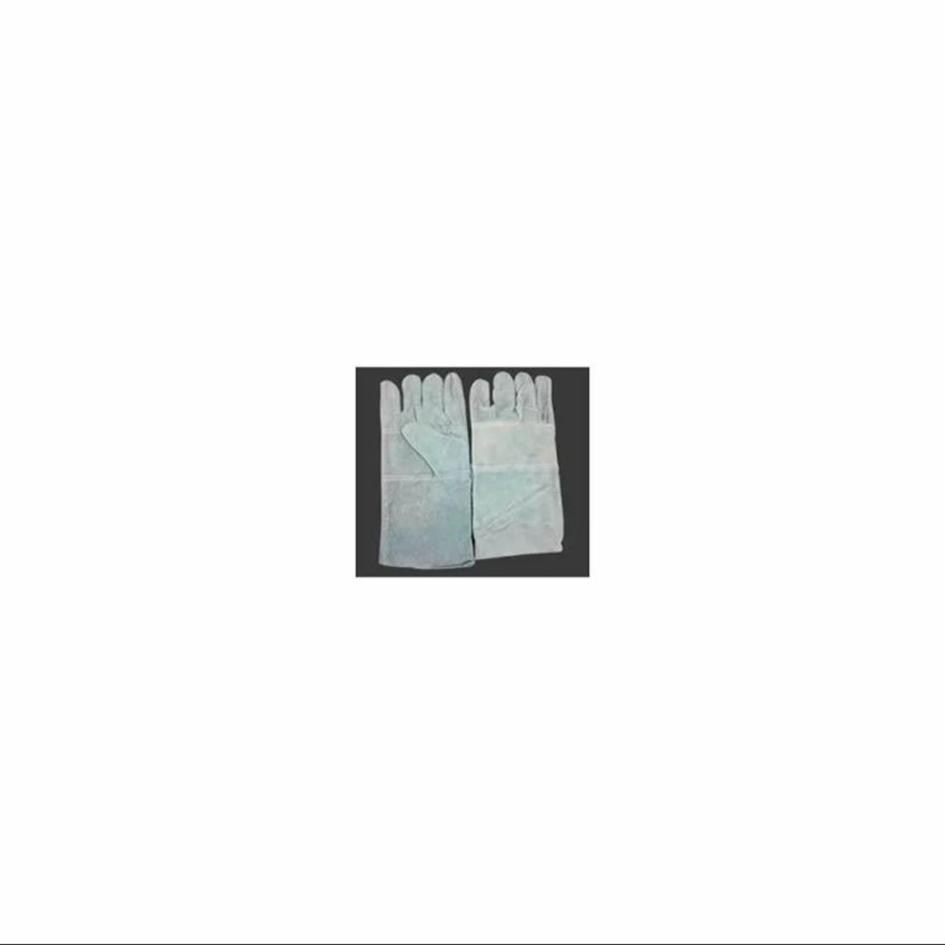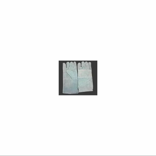 Unisex white leather welding gloves with palm lining. Full fingered design, plain appearance, and manufactured in India for welding applications.