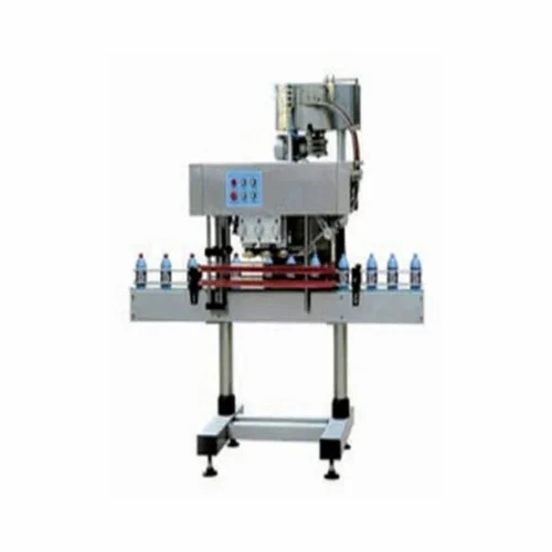Silver, stainless steel automatic screw capping machine with 95% production efficiency. Durable, paint-coated surface finish. Standard size designed for reliable operation.
