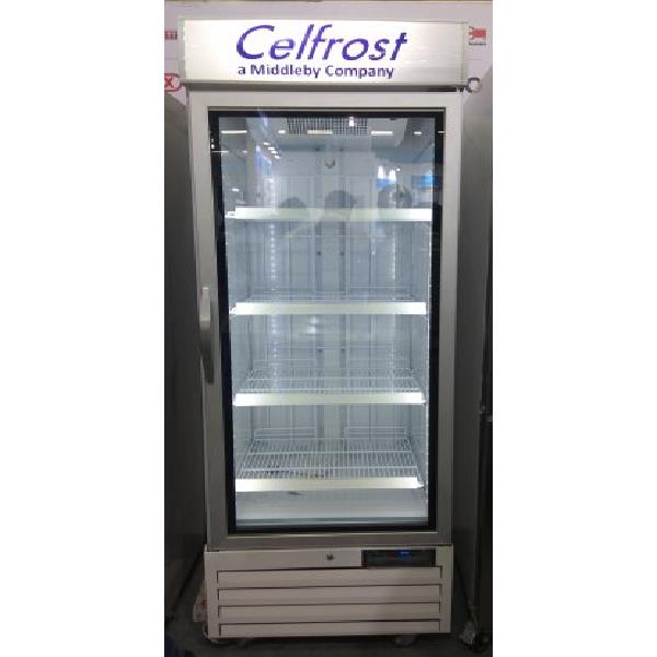NFG 450 Upright Showcase Freezer. Stainless steel body with auto-defrost. Operates at -18 to -22degC with 400L capacity and front-opening door.
