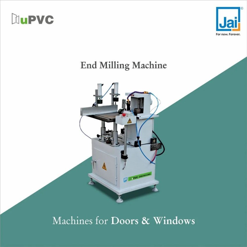 Automatic end milling equipment for UPVC profiles. Features 2 HP motor, 2800 rpm rotation, and V-shape cutting capability. Operates on 380/50 V/Hz with 1-year warranty.