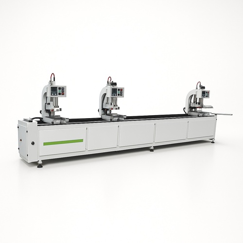 Semi-automatic UPVC three-head welding machine, 220V/50Hz, 3.5kW. Welds UPVC profiles with 0.4-0.6 Mpa pneumatic pressure and 20-120mm welding area.