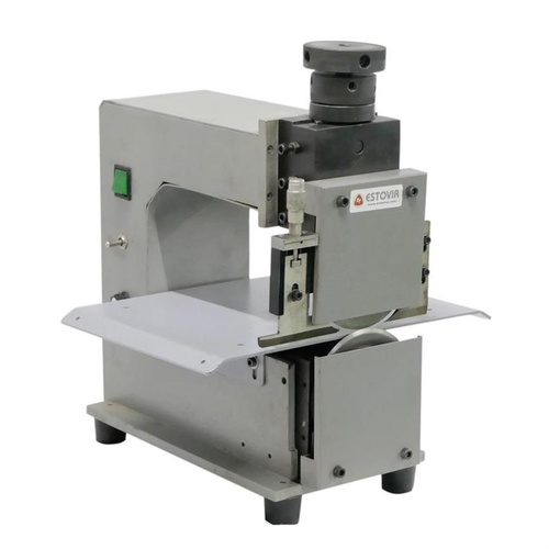 This PCB separator machine features 2 blades for V-cut separation. Operates on 220V AC, 50 Hz, with a max PCB thickness of 3 mm and dimensions of 350x330x410 mm.