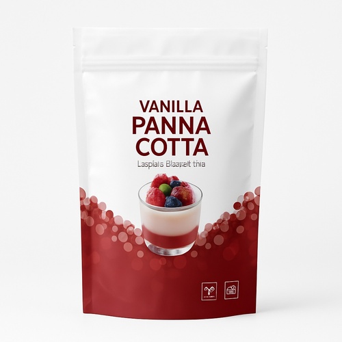 Vanilla Panna Cotta instant dessert mix. FSSAI certified, 1 Kg Horeca pouch pack. Made with sugar, shelf life of 1.5 years. Ideal for professional use.