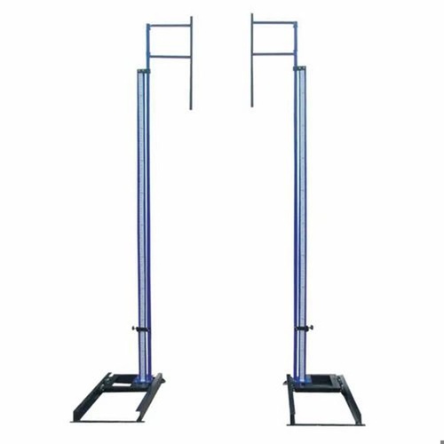 Sturdy pole vault stand designed for athletic events. Provides stable support for pole vaulting equipment during training and competitions.