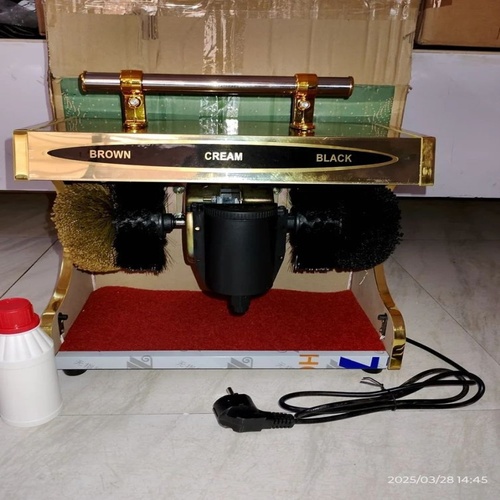 Compact shoe sole cleaning machine, stainless steel/satin finish. Features 50/60Hz frequency, IP4 rating, 40W power, 220V, and 7kg weight.
