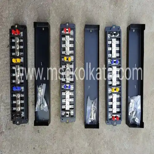Panel mount test terminal block with brass contacts. Rated for 50 amps and 415 V AC. Ideal for panel applications. Made in India.