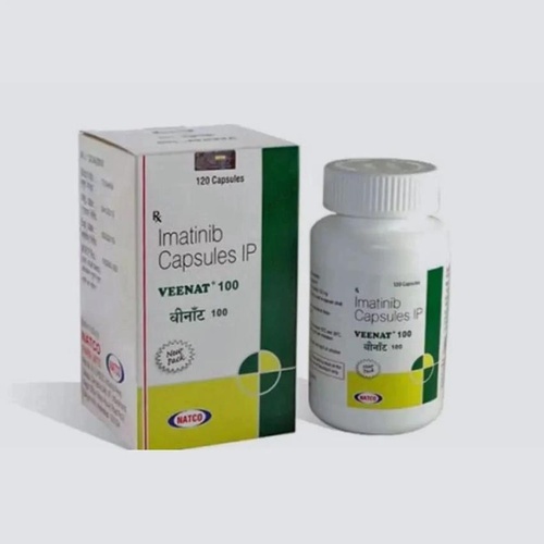 Chemotherapy capsule containing Imatinib for slowing cancer cell growth. Each bottle contains 120 capsules, 100 mg strength. Prescription required.
