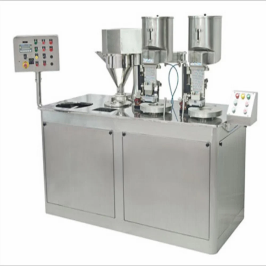 Semi-automatic vegetal capsule filling machine for pharmaceuticals. Mild steel, 220V, 50-60 Hz. Capacity up to 3000 capsules/hour. Made in India.
