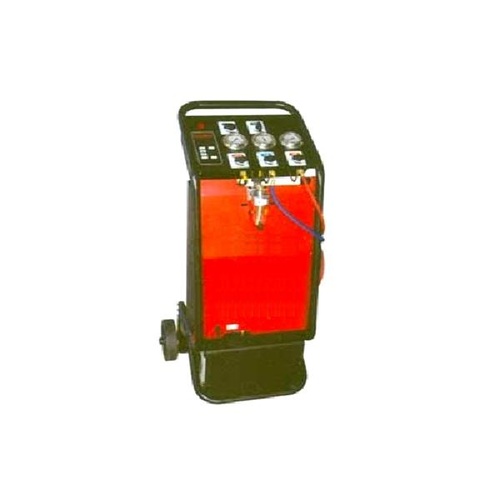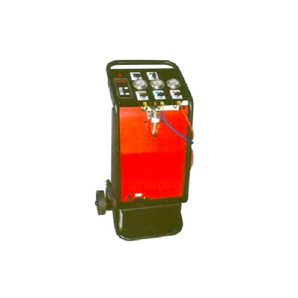 Automatic R-134a vehicle AC recovery equipment. Features 220V, 50Hz power, 0.5 kg/min recovery rate, 0.01 kg scale resolution, and 142 UM pump displacement.