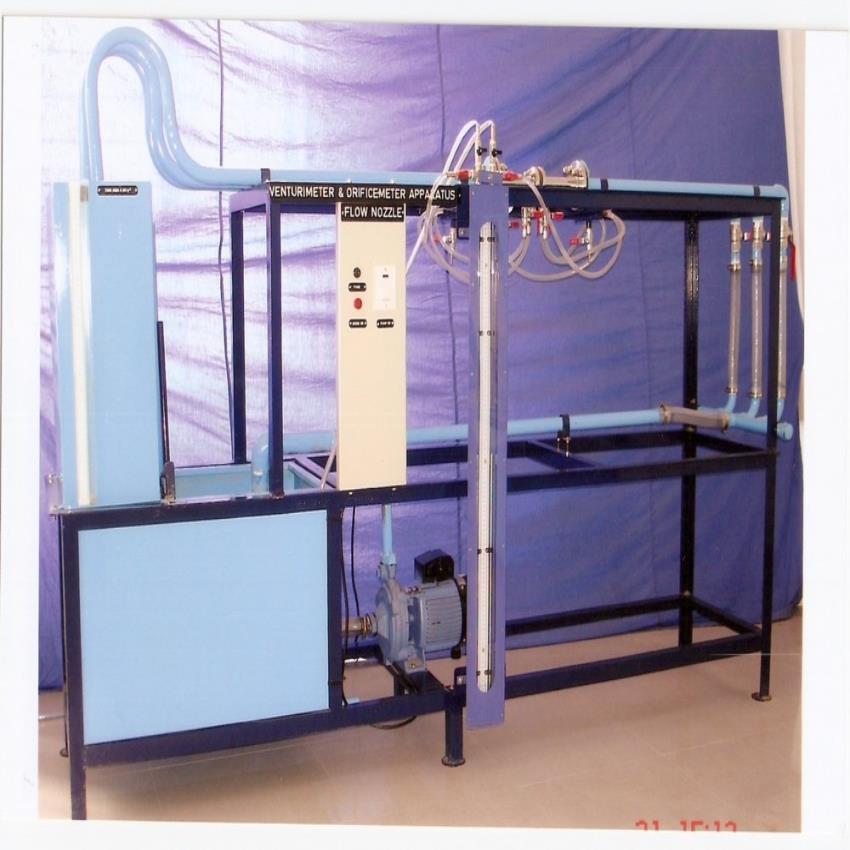 This apparatus is used for Venturi and flow nozzle measurements. It facilitates precise fluid flow analysis in laboratory settings, ensuring accurate data collection for engineering applications.
