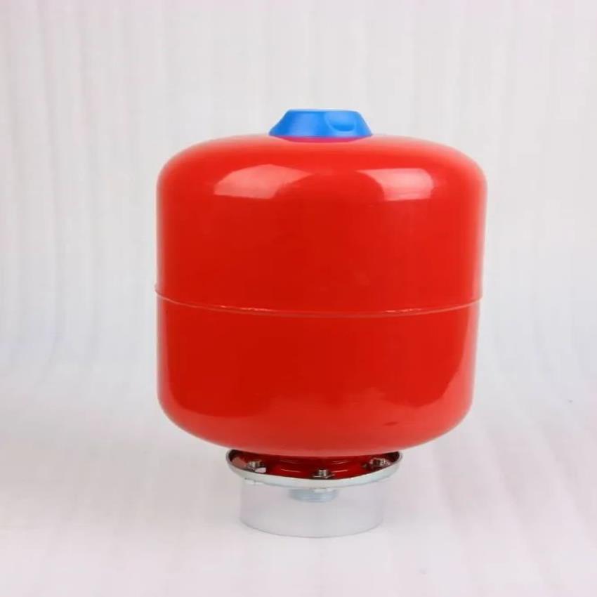 Vertical expansion tank with 0-250 L capacity. Available in red and blue. Operates at 10-16 bar pressure. Stores water. Size: 200x340 mm.