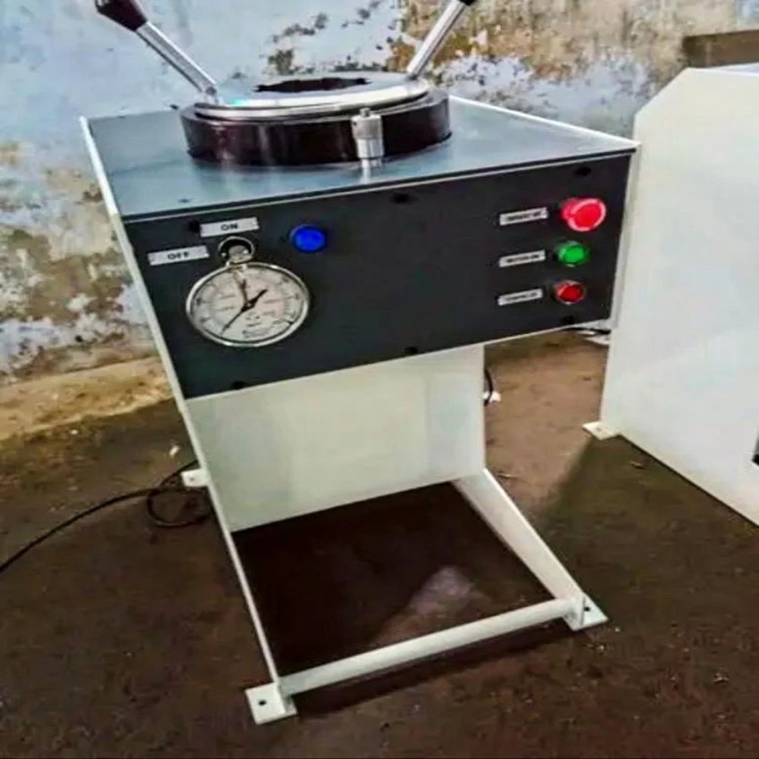Vertical mild steel hose/pipe crimping machine. Semi-automatic, single-phase electric operation with 20-ton max force for industrial use. Made in India.
