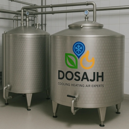 Industrial vertical milk chiller, 500L capacity, food-grade SS304. Chills milk to 4°C from ambient in 3-4 hours. Features one door.