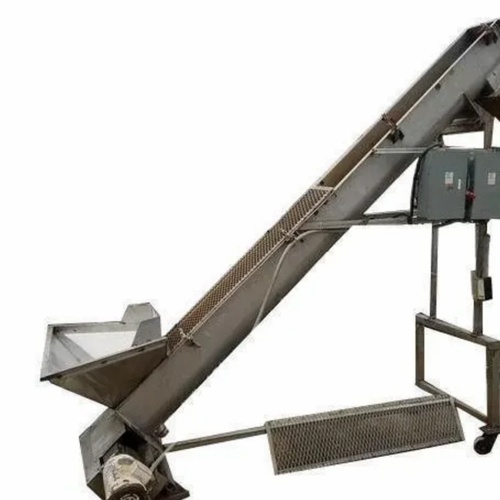 Vertical screw conveyor machine for industrial use. Available in Mild Steel/Stainless Steel. Capacity 1-5 Tons/Hour. Customized design. Made in India.