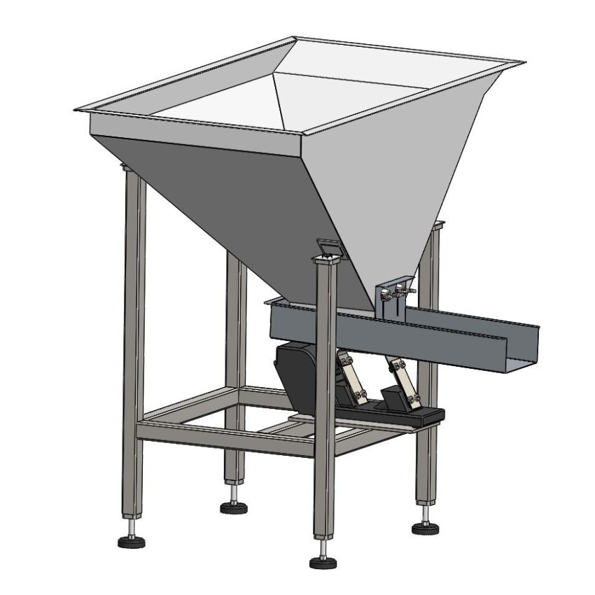 This vibratory tray feeder includes a hopper for efficient material handling. Backed by a 12-month warranty, it ensures reliable operation for industrial applications. Minimum order quantity: 1 unit.