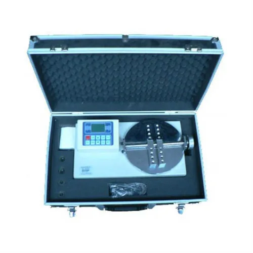Industrial bottle cap torque meter with +/-0.5% accuracy. Features LCD display, 20-200mm jaw diameter and peak measuring range.