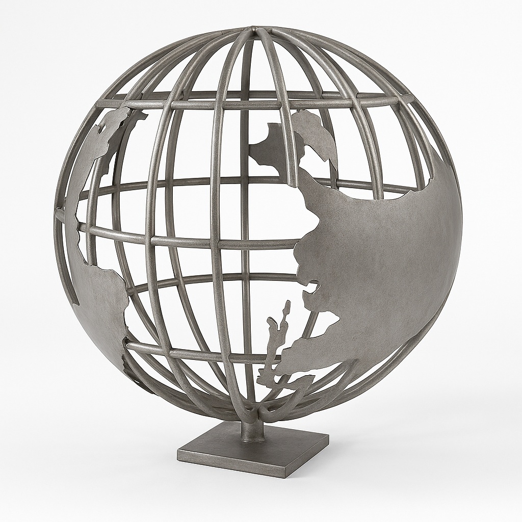 Crafted from Iron, this 6-foot tall Globe Sculpture features Deco paint finishing. Available in custom colors, this piece originates from the 20th Century.