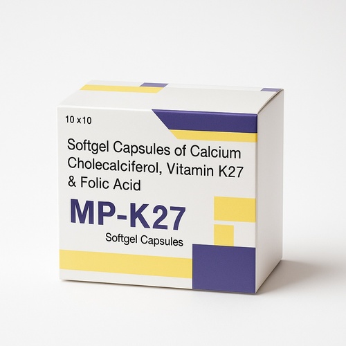 Vitamin K2 7 softgel capsules with multivitamins, formulated for multivitamin deficiency and bone strengthening. Available in 10x10 blister packaging for private labeling and third-party manufacturing.