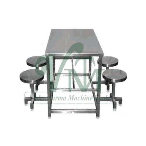 VMT customized dining table crafted from polished SS for restaurant use. Durable, Indian-made, with a robust SS base. Ideal for commercial establishments.